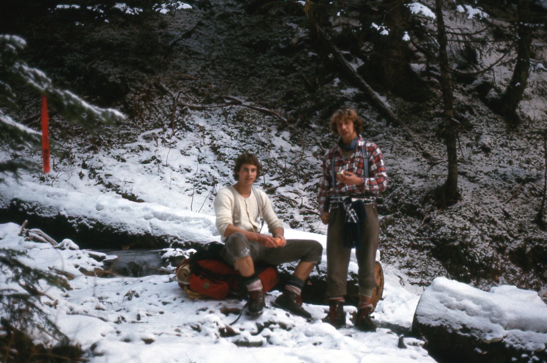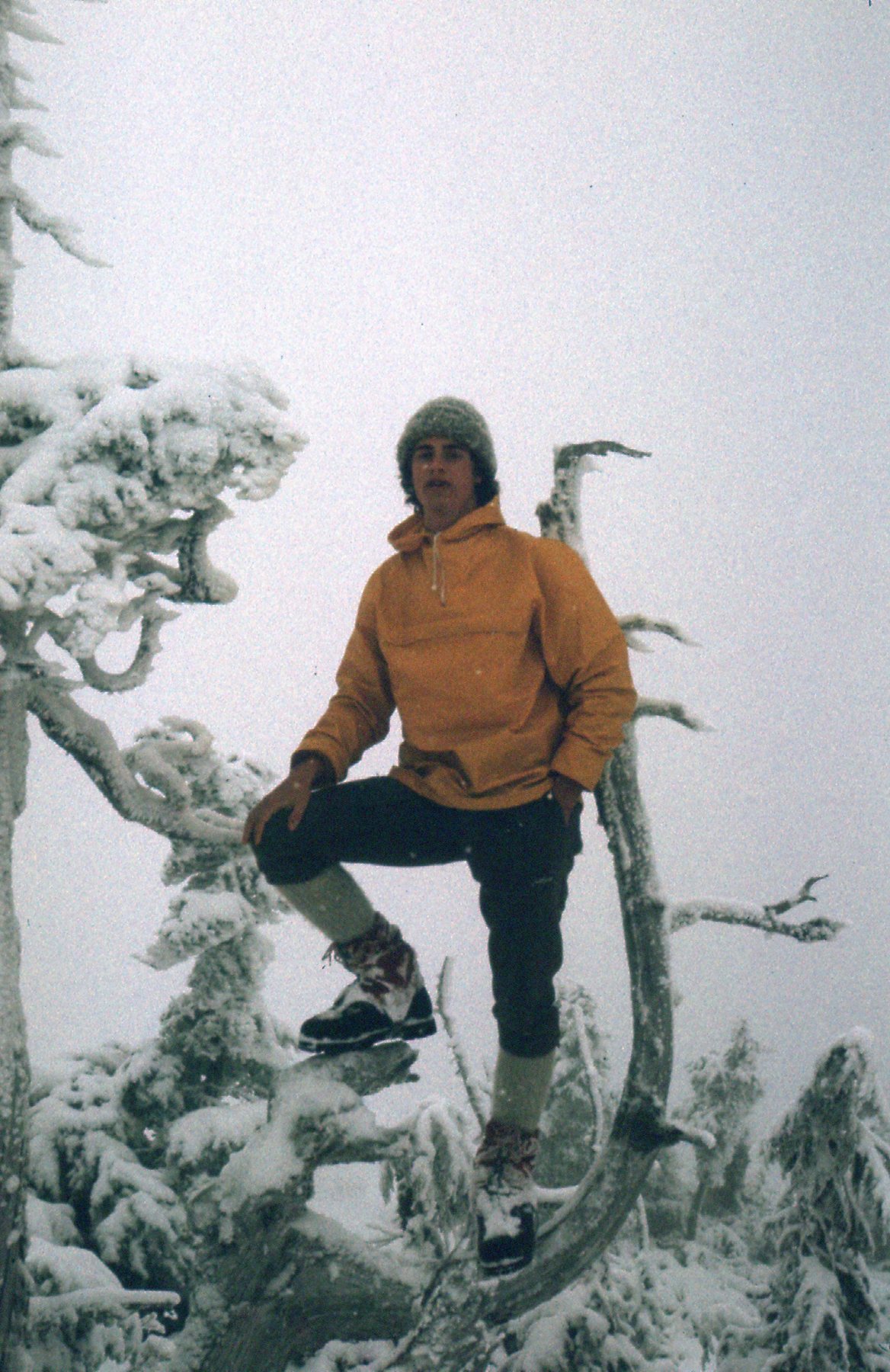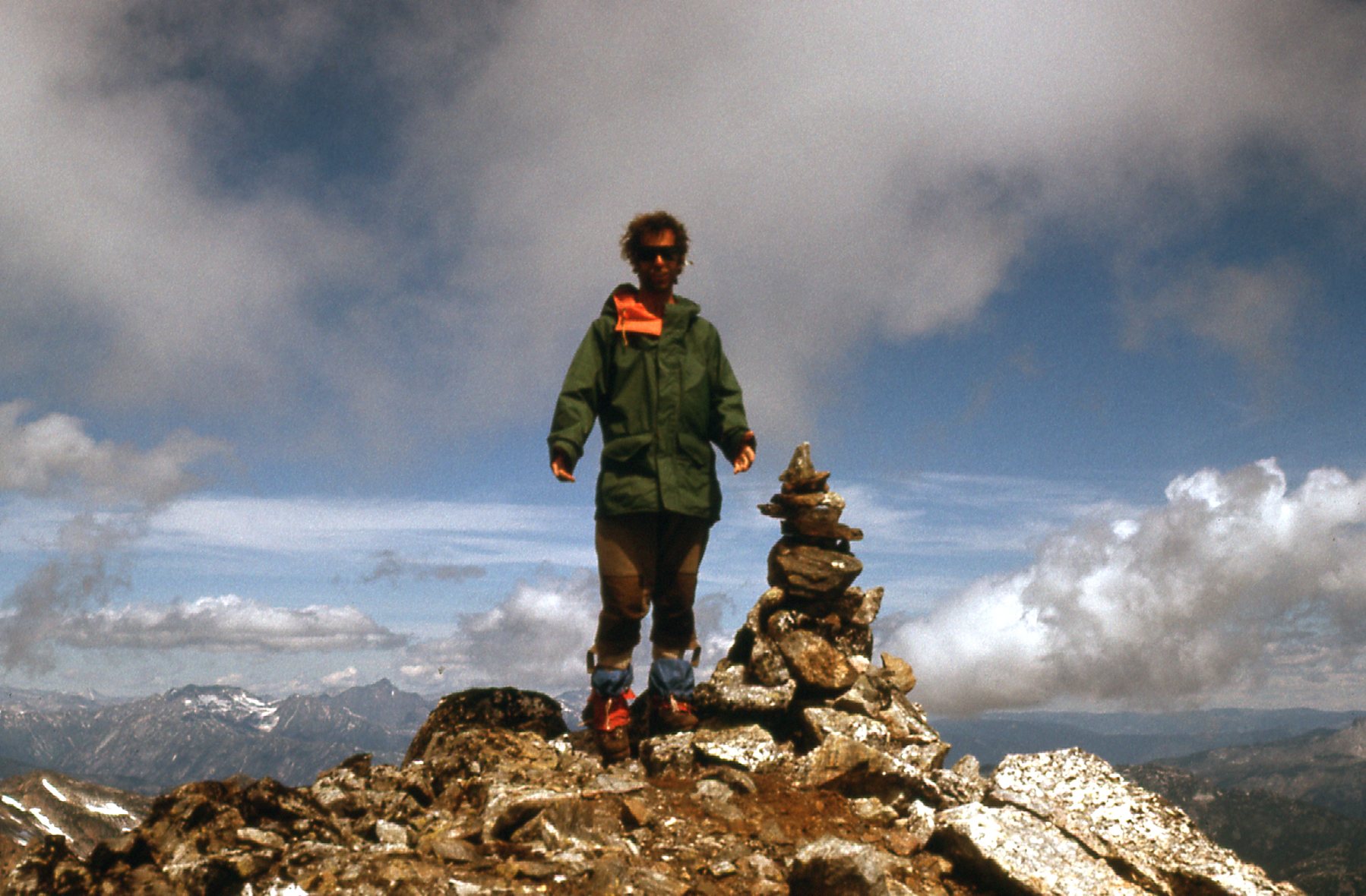 And one more. Atop a peak in the Lillooet Range in 1977. Here you have the rather disheveled Desert Mountaineer posing with an early iteration of Gore-tex, along with knickers, knicker-socks, gaiters and heavy mountaineering boots.