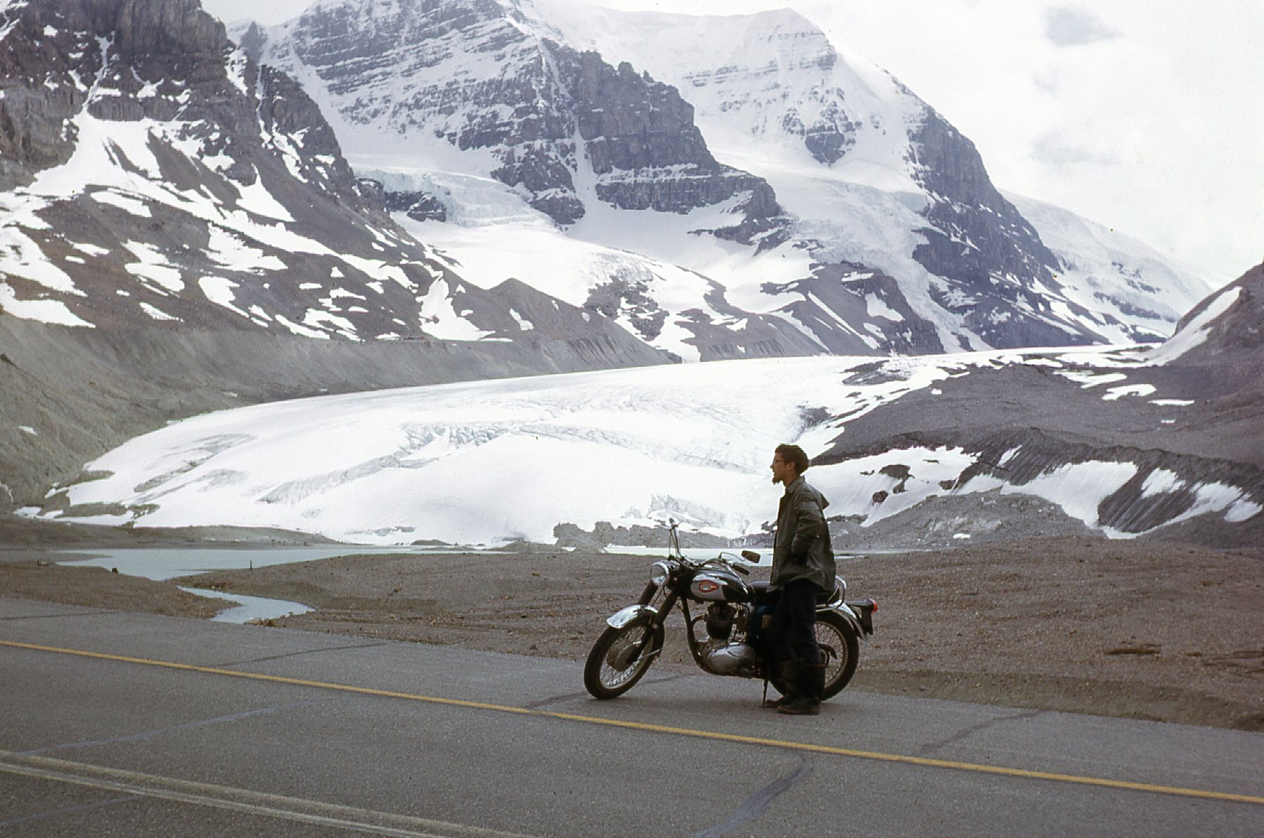 The first glacier I ever visited was the Athabasca Glacier. Due to its ease of access, it is the most-highly-visited glacier in North America, perhaps even the world. I had a motorcycle that summer of 1966 and used it to travel the Canadian Rockies extensively.