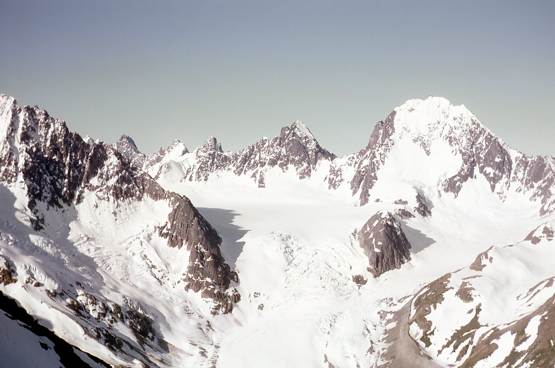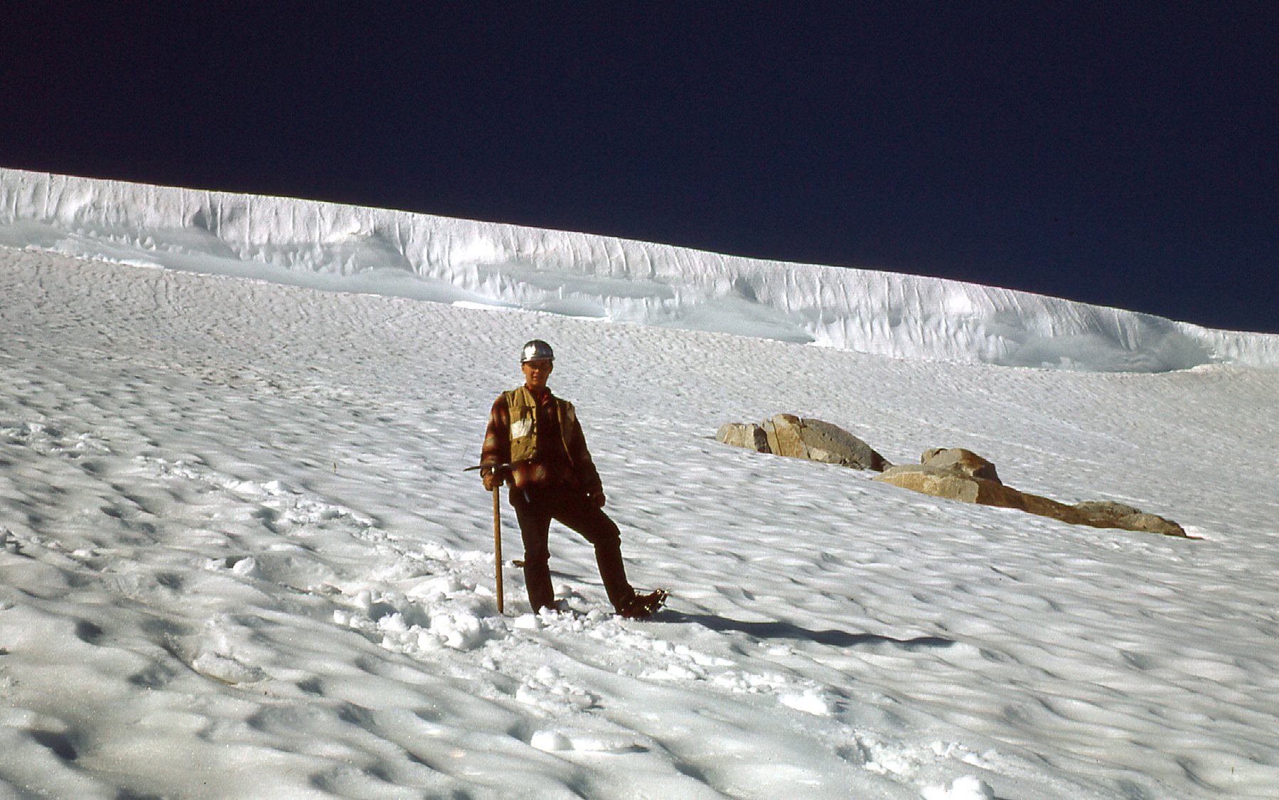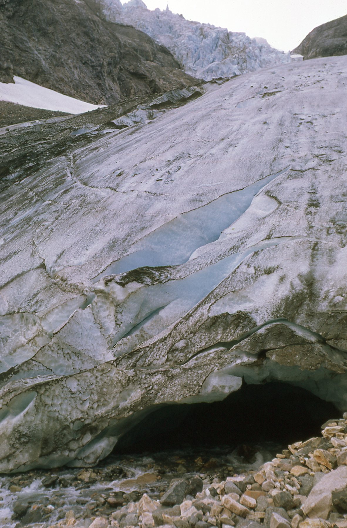 Glaciers have always fascinated me, there was always something special and different about them. As a child, I saw pictures of them in books and wondered what it would be like to touch one, or even walk on one. By the time I was in university and working on a degree in geology, I still thought they were something I’d like to know more about. The thought even crossed my mind that I’d like to become a glaciologist, but then reality set in. First of all, with all the partying I did, my marks were too poor to ever get into grad school. Then I learned that there was a lot of math and physics involved to be a good glaciologist, and that was the final nail in the coffin – those were my weakest subjects. A bachelor’s degree in mining exploration wouldn’t have me studying too many glaciers. Oh well, I was still lucky enough to get near quite a few doing exploration work, and then throughout my life as a mountain climber I managed quite a few more. So, I thought I’d write a piece about glaciers in order to share them with you, the ones I’ve been fortunate enough to personally visit, mostly pictures I’ve taken over a 60-year period.