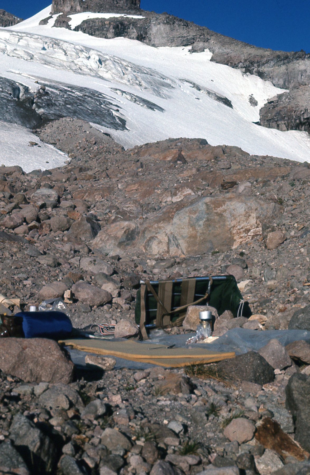 This was my overnight bivi site, between the upper and lower Sitkum glaciers.